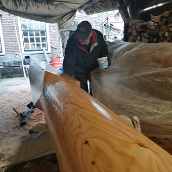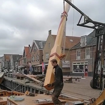 Zoals gemeld bij onderhoud 2024, was de mast van de EB61 afgekeurd, Dit was niet voorzien of begroot. Maar moest natuurlijk wel gebeuren. Gelukkig kon Scheepswerf Nieuwboer ons verzekeren voor het nieuwe vaarseizoen 2025 en nieuwe te kunnen leveren, En met een mooie subsidie van het Mondriaanfonds is het allemaal weer goed gekomen.